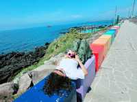 If you visit Jeju Island without taking photos at the Rainbow Coastal Road, it's almost like you haven't been here at all! There are many cafes, restaurants, souvenir shops, and even a Korean sauna nearby. If you're on a self-driving trip, parking is super convenient. The Rainbow Coastal Road is quite long and is located near the airport. 📍Address: Rainbow Coastal Road Dodu-dong Mujigae Haean Doro Jeju Special Self-Governing Province, Jeju City, Dodu 1-dong 1729