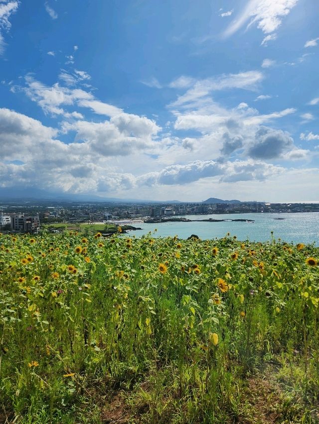 ๐Ÿ“169-1 Hamdeok-ri, Jocheon-eup, Jeju-si, Jeju ๐ŸŒปLocated on the mid-slope of Seoubong, an oreum (volcanic hill) right next to Hamdeok Beach in Jeju, there is a sunflower field that blooms in midsummer. The scenery of the sea combined with sunflowers is truly stunning. ๐ŸŒปAs you head towards the summit from the entrance of Seoubong, youโ€™ll find the field after about a 5-10 minute walk, making it an easy and accessible hike. ๐ŸŒปThere is a parking lot near the entrance, but keep in mind that it might not have enough space due to the number of visitors. ๐ŸŒปDuring summer, when the sunflowers are in full bloom, the vibrant yellow flowers and the blue sea create a breathtaking view.