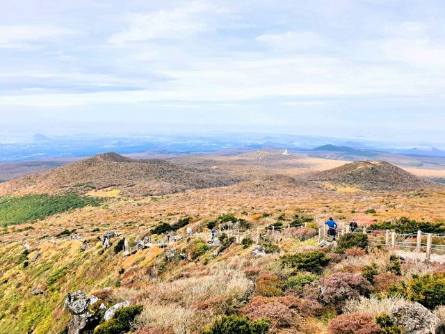 Autumn on Hallasan Mountain is a blend of summer and winter, offering a mix of green, brown, and the red of autumn foliage. After a long climb, look back and you'll see the large oreums of Jeju Island. Crows flutter across the sky. Hallasan's Yeongsil Trail is not the easiest trail due to the long stairs it requires, but once you get past the stairs, the terrain is mostly flat, making it a great challenge for beginner hikers. ๐ŸŒณ Recommended Hiking Method : Search for "Obaek Generals and the Crow" on your map app and start from there. ๐ŸŒป Admission : Free โš˜ Tip : To park in the parking lot next to "Obaek Generals and the Crow," you must arrive very early in the morning. If you arrive after 8 a.m., there will be no space. There is a parking lot below, but it's an uphill climb, so we recommend starting your hike early in the morning. The stairs continue endlessly from the middle of the trail. Your knees may hurt on the way down, so we recommend using knee pads and walking sticks. #AdventureMoment #JejuIsland #Hallasan #HallasanYeongsilCourse #JejuIslandTravel