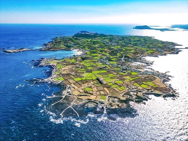 ๐Ÿ๏ธ Udo โ€“ The Emerald Island Within an Island Just a 15-minute ferry ride from Seongsan Port on the eastern side of Jeju, Udo is often referred to as the 'island within an island.' Its white coral beaches and emerald waters create an exotic landscape. ๐Ÿš From the summit of Sumeori Oreum, you can enjoy a panoramic view of Udo, and on clear days, even catch a glimpse of Seongsan Ilchulbong. In summer, it's perfect for snorkeling and ocean activities, while in spring and autumn, cycling around the island is a popular activity. Additionally, you can savor local specialties like Udo peanut ice cream and seafood dishes, making it a must-visit destination for food lovers. It's an ideal spot for a day trip, attracting countless visitors as a must-see attraction. ๐Ÿšค