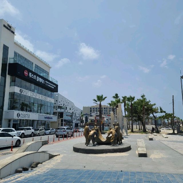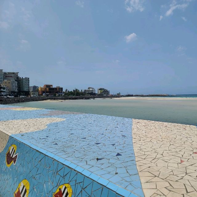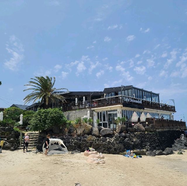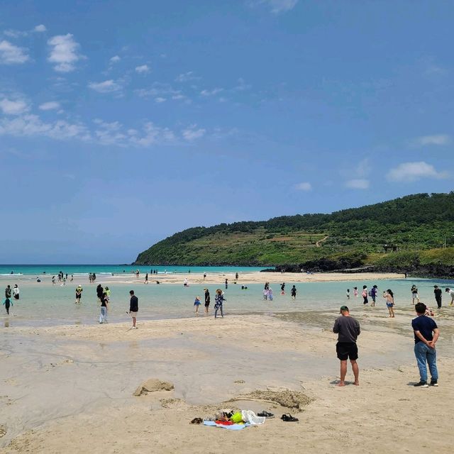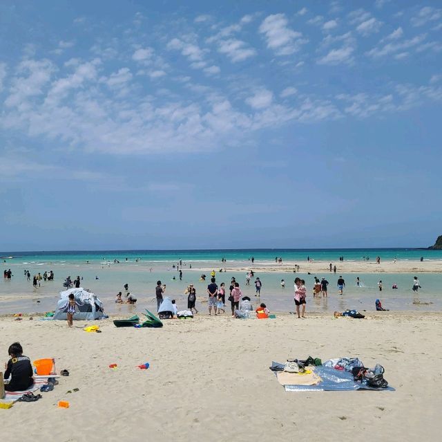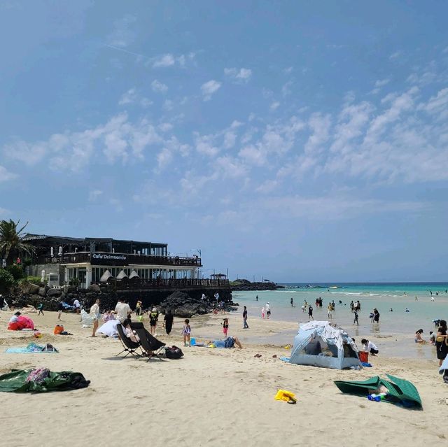 This is beautiful Hamdeok Beach. With the nice weather, many people come to enjoy the blue waters of this famous Jeju beach. The surrounding cafes and restaurants are also great, and I highly recommend swimming and walking in the beautiful ocean. #beach #hamdeokbeach #jejuisland #hamdeokbeach
