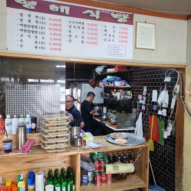 #DomesticTravel #YeonghaeRestaurant #JejuTravel Located near Moseulpo Port, Yeonghae Restaurant has long been a beloved local restaurant. Its hearty beef stew and refreshing milmyeon (wheat noodles) are particularly popular. The beef stew, with its rich broth and generous portions of large pieces of meat, is perfect for a hangover or a hearty meal. Its light, refreshing flavor makes it a comfortable and enjoyable meal for everyone. In the summer, the refreshing milmyeon (wheat noodles) and bibim milmyeon (mixed milmyeon) are also popular, boasting a clean flavor and just the right amount of seasoning. The boiled pork is tender and odorless, making it an even more satisfying meal when paired with the meat. The interior has a simple, cozy atmosphere, and as a frequent visitor for locals, it's more casual than touristy restaurants. The restaurant tends to close early when supplies run out, so we recommend visiting during lunch or early dinner. Address: 34-2 Hamosangga-ro, Daejeong-eup, Seogwipo-si, Jeju-do Phone: 064-794-6763 Hours: 10:50 AM - 7:30 PM (closes when ingredients run out), Closed Tuesdays
