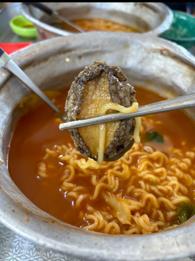 The first stop of the trip is straight to the coast of Jeju Aewol to find the super healing Korean drama seaside shop "Noraba"! This place is completely Korean drama scene, you feel chill when you step down Go to the counter to order yourself, and then a mysterious surprise spurts out: the octopus seafood ramen debuts fresh, and the most exaggerated thing is that even the bacon is still moving! Bite by bite of spicy soup soaked in seafood, listening to the sound of the sea waves together into the mouth, the whole person immediately relaxed, the sense of fatigue automatically reset🔥! In addition to burst fresh octopus ramen, there are also seafood cakes and bento box rice, all fresh straight to the sea, delicious and full. Be sure to sit at the window seat! While looking at the blue sea of ​​Jeju, while slowly enjoying the food, it's really the first choice for IG photography📸! 🍜Noraba Address: 100 Gueom-gil, Aewol-eup, Jeju-si, Jeju-do, South Korea Popular must-eats: octopus ramen, seafood ramen, bento box rice Travel Tips💡 Jeju spring and autumn wind is relatively strong, remember to bring a jacket, the restaurant is close to the sea, there will be dew at night, cold protection must! Jeju Food Exploration/Korean and Japanese Small Travel/Sea View Restaurant/September Chill Explosion Good Places
