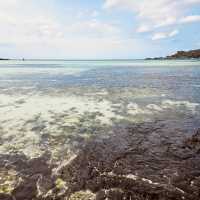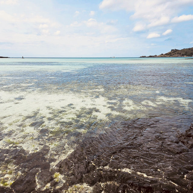 #hellohalloween Geumneung Eutteumwon Beach boasts some of the most spectacular, vividly colored water on all of Jeju Island. The shallow, clear water shimmers in unbelievable shades of turquoise and azure, contrasting beautifully with the dazzling white sand, which is rich in crushed seashells. This pristine clarity and color make it a perfect spot for photography and simply gazing out at the horizon. Because the water is so shallow for a considerable distance, it warms up slightly on sunny days and offers an incredibly safe and inviting swimming environment. It truly feels like stepping onto a hidden tropical island right in South Korea.