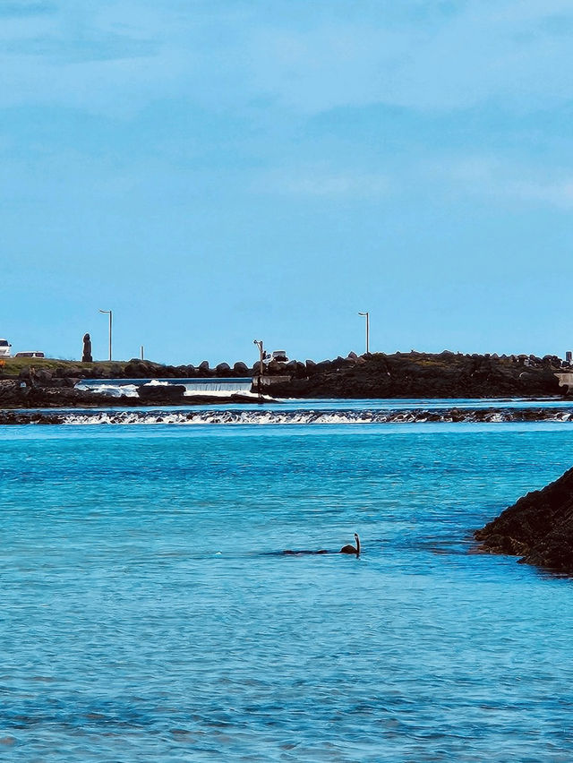 Conan Beach, a famous snorkeling spot in Jeju where you can see various marine life including fish