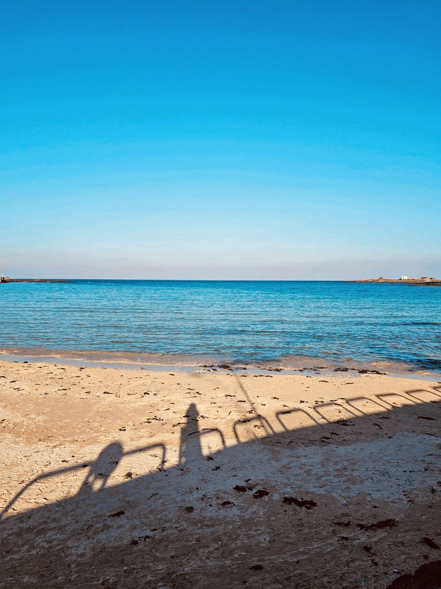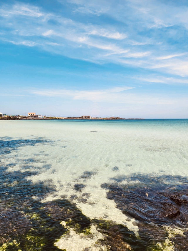 #hellohalloween Hagosudong Beach is often nicknamed the "Maldives of Korea," and for good reason. The water here is stunningly shallow, clear, and takes on an intense turquoise-to-emerald gradient that is hard to match anywhere else on Jeju or Udo. The fine, bright sand enhances the water's color, creating a picture-perfect tropical scene. This beach is a true visual feast and is undoubtedly one of the most beautiful spots for photography and simple beach appreciation.