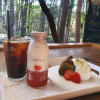 Enjoy desserts and drinks in Jeju's natural surroundings! Best time to visit during warm, sunny weather๐Ÿ‘ ๐Ÿ“65 Eunsu-gil, Jeju-si, Jeju, near Halla Arboretum โฐ๏ธ Open daily from 10:00 AM to 10:00 PM โœจ๏ธ Parking, Wi-Fi, pet-friendly, and more #JejuTravel #Betdi #HallaArboretum #HallaArboretumCafe #JejuCafe #JejuCafeRecommendation #Nature #Forest #ForestCafe #Dessert