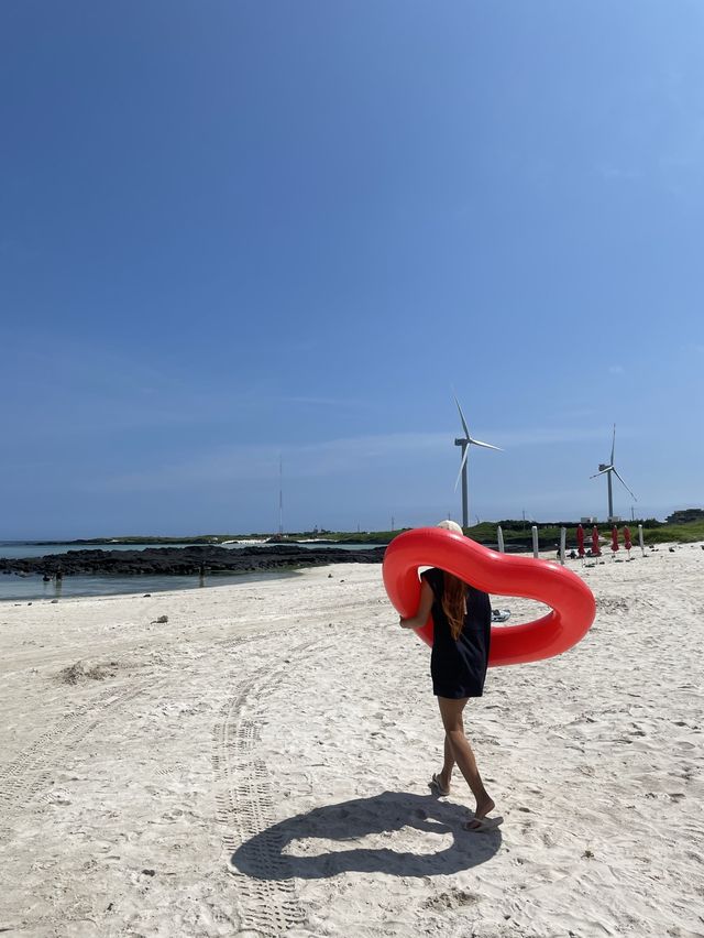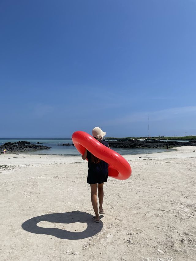 #Beach . . The beautiful beach representing Jeju Gimnyeong Singsegi Beach. If you bring a red tube You can take a picture of your life at the beach and have more fun. You can put in a tube for 2,000 won at the beach entrance! ๐Ÿ“Gimnyeong Beach #Gimnyeong Beach #Gimnyeong Singsegi Beach #Heart Tube