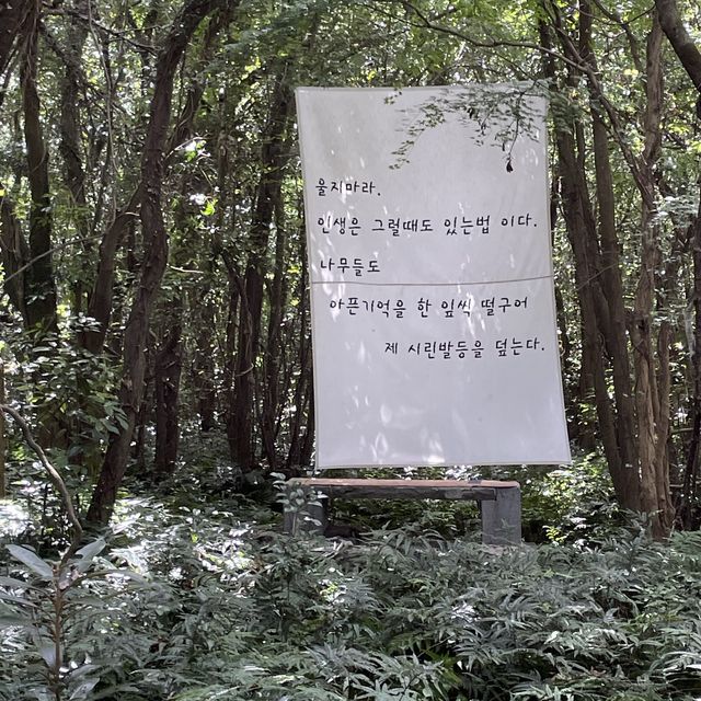 The meaning of Gotjawal is Got (a straight tree) and Jawal refers to the trees in the forest that have grown tangled and messy. It is a place that gives people who are tired of city life or those living in Seoul or other cities time to commune with nature. If you walk along the forest path, you will feel free without realizing it. The good quotes you come across while walking will also stick in your heart, and it seems like a good place to bring your children. A course that is highly recommended for those who leave the city and go on a solo trip to ‘find myself…’. This place is different from the tree works of photographer Bae Byeong-woo, and you can capture your own trees and nature. #Sanyangkeunggot #GotjawalRecommendation