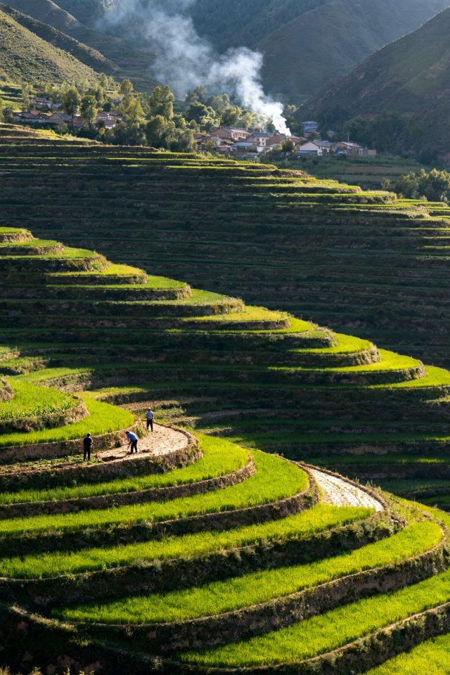 Discover the "Natural Air-Conditioned Room" in the heart of Panshan❄️ This small town with an average summer temperature of 18°C even has sweet breezes 🚗 Pack your bags for a spontaneous summer getaway! 【Jingyuan Must-Play Guide】 📍Location: Jingyuan County, Guyuan City, Ningxia 🌡️Average Summer Temperature: Around 18°C 🌲Forest Coverage: Over 38% 💨Negative Oxygen Ions: 2221/cm³ 🔥Top Popular Attractions: 1️⃣ Laolongtan (Old Dragon Pool) 📌Address: Jinghe Source Town, Jingyuan County 🌟Legend says this is where Wei Zheng dreamed of slaying the old dragon of Jing River ✨Activities: Stroll along the poolside boardwalk and listen to ancient legends 2️⃣ Liupan Mountain National Forest Park 📌Address: Border of Jingyuan County and Longde County 🎫Ticket: 68 RMB ⏰Opening Hours: 8:00 AM - 6:00 PM 💫Must-Do: Hiking in Xiaonanchuan, exploring Liangdian Gorge 3️⃣ Yehe Valley 📌Address: 8 km west of Jingyuan County town 🌸Feature: 10 km corridor of wild lotus flowers 🚶Recommended: A must-visit during the July-August blooming season! 4️⃣ Liangdian Gorge 📌Address: Jinghe Source Town, Jingyuan County 🏹Legend: Summer retreat site of Genghis Khan 🌿Hiking Route: Approximately 5 km in total 😋Food Highlights: • Secret Recipe Hand-Pulled Lamb • Stir-fried Lamb • Hui Eight-Treasure Tea 🏡 Accommodation Recommendations: ✅ County Hotels: Well-equipped facilities ✅ Farm Stays: Unique homestays in Yejia Village ✅ Camping: Liupan Mountain Starry Sky Campsite 📌Useful Tips: ✔Best Season: May to October ✔Transportation: ✈️By Plane → Guyuan Liupan Mountain Airport (1-hour drive) 🚄By Train → Guyuan Station (1.5-hour drive) 🚗By Car: 4 hours from Yinchuan Silhouettes of three people walking on the terraced fields In the distance, rolling green mountains and villages Such a summer is truly healing💚