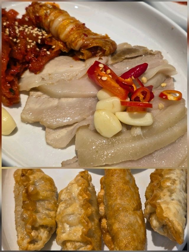 Sonjeong Bossam in Jongno is a place where you can enjoy a hearty Korean meal prepared with care. Their signature dishes, bossam and fried dumplings, are particularly popular. The bossam features tenderly boiled pork slices that melt in your mouth when wrapped in garlic ssamjang and napa cabbage leaves. The clean, savory flavor of the meat, free from any unpleasant odors, makes it a light and enjoyable dish. The accompanying crisp kimchi, with its tangy and spicy notes, perfectly balances the richness of the bossam. The fried dumplings, with their crispy texture and generous filling, are equally delightful. The aromatic blend of vegetables and meat inside the dumplings makes them a great choice as a main dish or a side. Enjoying the warm bossam alongside the crispy dumplings creates a perfect balance. If you're looking for a satisfying yet clean meal in Jongno, the combination of bossam and fried dumplings at Sonjeong Bossam is the answer.