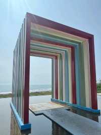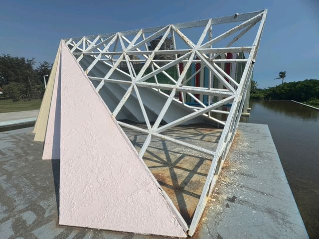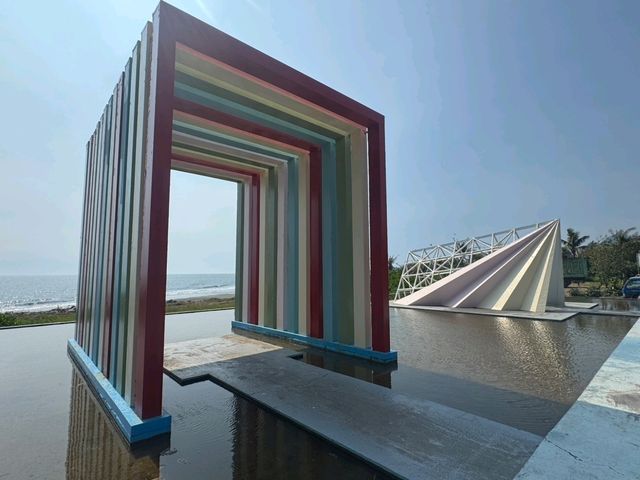 #August2025 Besides the historical sites and delicious seafood, the most popular photo spot for tourists visiting Cijin, Kaohsiung, is undoubtedly the Cijin Rainbow Church. This colorful art installation, with its unique design and romantic atmosphere, has attracted countless couples and influencers, becoming a dazzling sight along the Cijin coastline. The Cijin Rainbow Church isn't actually a church, but rather a geometric complex adorned with seven colors: pure white, aqua blue, pink, and light yellow. It cleverly utilizes light and reflection to create a dreamlike effect. The surrounding pool acts like a giant mirror, reflecting the church's image perfectly, creating a wondrously symmetrical scene. Whether under a clear blue sky or at sunset, the church's colors change, creating a uniquely romantic atmosphere. Designed to provide a romantic setting for wedding photography and tourist photos, the Rainbow Church features a pure white triangular church and heart-shaped landscapes, offering a variety of photo opportunities. Every corner is filled with a sense of dreaminess and sweetness.