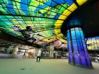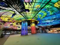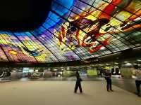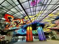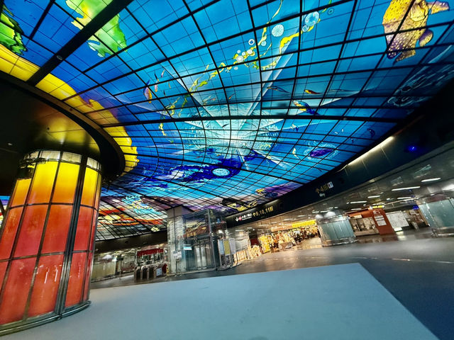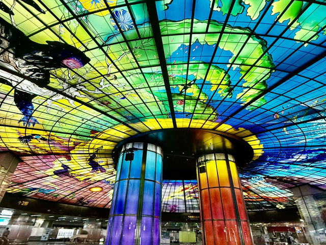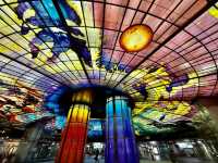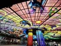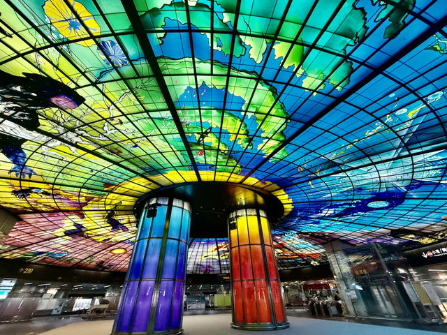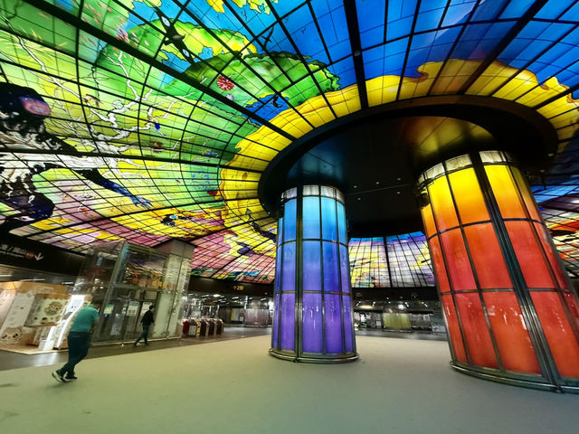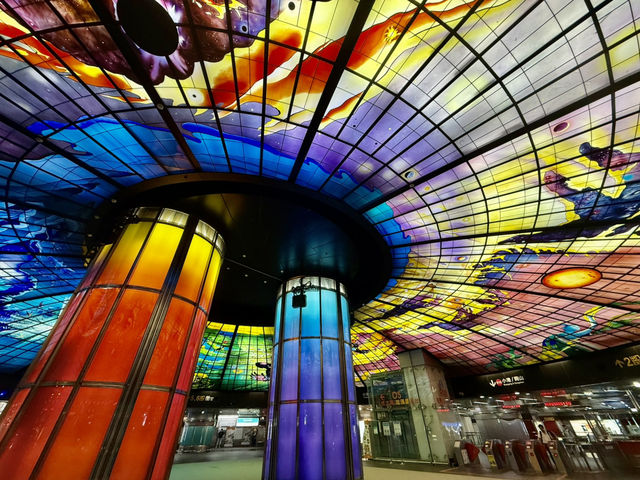 Kaohsiung MRT (Formosa Boulevard Station): The Dome of Light took four years to create and was designed by world-renowned artist Narcissus Quagliata. The Dome of Light is divided into four zones: Water, Earth, Light, and Fire, representing gestation, growth, innovation, and rebirth, each representing a different story.