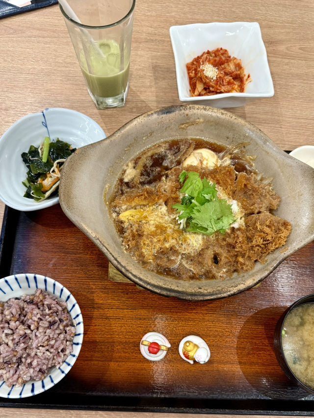 Today, Monday, I went to Hanshin Department Store's Chenggong branch for lunch alone. Hanshin Department Store B3 (Ootoya): I ordered (Scrambled Egg Pork Cutlet Hot Pot Set Meal, Grilled Yellow Pomfret, Kimchi, Special Warabi Mochi Dessert, and Iced Tea Latte). Even eating alone is a good experience. The staff were friendly, young, handsome, and cute. They made it easy for me to enjoy the food even while dining alone. It's a great restaurant, with genuine ingredients, very healthy, and low in oil and salt. Highly recommended.