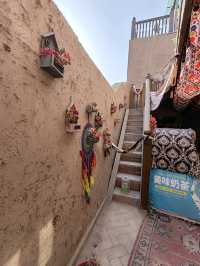 The Gaotai Folk Houses, a Uyghur settlement known as the "Living Folklore Museum," feature layered earthen structures built against a high cliff. Having endured centuries of wind and rain, they remain remarkably sturdy. Stepping inside, one is greeted by exquisitely wood-carved pavilions, vibrant blue doors and windows, and distinctive traditional textiles. The courtyards are filled with the vibrancy of daily life, while unique shops selling ethnic ornaments and beverages add a modern touch. This blend of ancient and contemporary elements showcases Kashgar's unique historical charm and dynamic cultural vitality . #hellohalloween