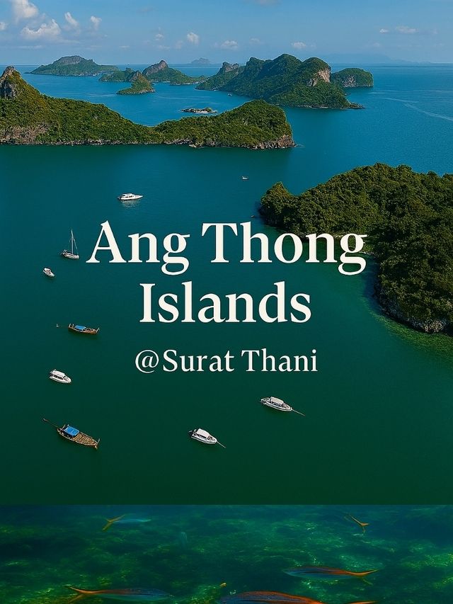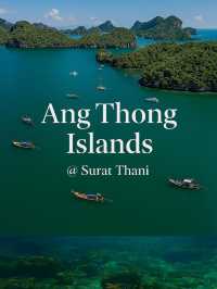 Ang Thong Islands Review, Surat Thani 🌴🌊 📍 Ang Thong Islands are a paradise in the Gulf of Thailand that you must visit at least once. 🚤 A thrilling speedboat trip takes just a short distance from Surat Thani city. 🏝️ The highlight is the over 40 islands, large and small, beautifully lined up. 📸 The bird's-eye view is the best! See the crystal-clear blue sea and the boats in the water. 🐠 Snorkel to see coral reefs and schools of colorful fish beneath the crystal-clear water. 🌅 In the evening, the beach is quiet, with the sun reflecting off the water's surface, captivating. 🧗♂️ There are challenging but rewarding rock climbing activities and viewpoints. 🛶 Kayak to explore sea caves and secret bays. 🍃 The pristine nature is perfect for those seeking peace and quiet. 📍 Perfect for families, couples, and adventurers. 💖 Ang Thong Islands is one of Thailand's hidden gems that you shouldn't miss! 📌 Hashtags: #AngThongIslands #SuratThani #ThailandTravel #ThaiSea #AngThongIslands #TravelThailand #SeaReview #Diving #Beach #NaturalTherapy #HiddenGemThailand