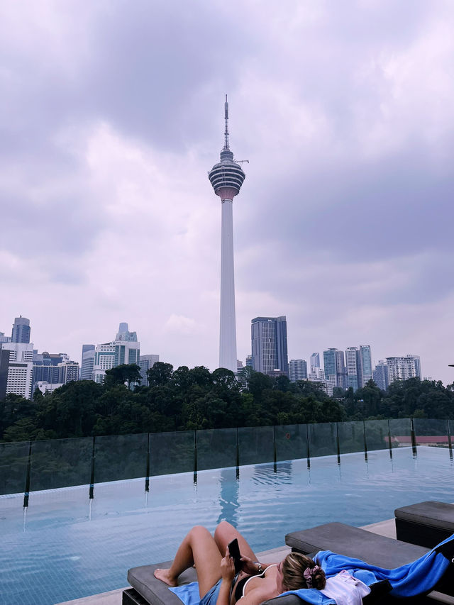 [Kuala Lumpur] A stylish pool bar with a view of the KL Tower right in front of you 🍸
