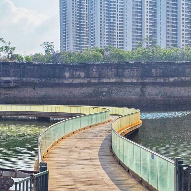 Below the Kunming Waterfall lies a serene lake with a walkway that allows visitors to enjoy the beautiful scenery. If you walk up to the Visitor Center, you can take in the expansive view of the lake above the waterfall. Additionally, there are paths around the lake for leisurely strolls and relaxation. The atmosphere is pleasant, the location is clean, and there are great photo spots. Public restrooms are available here and are considered clean.