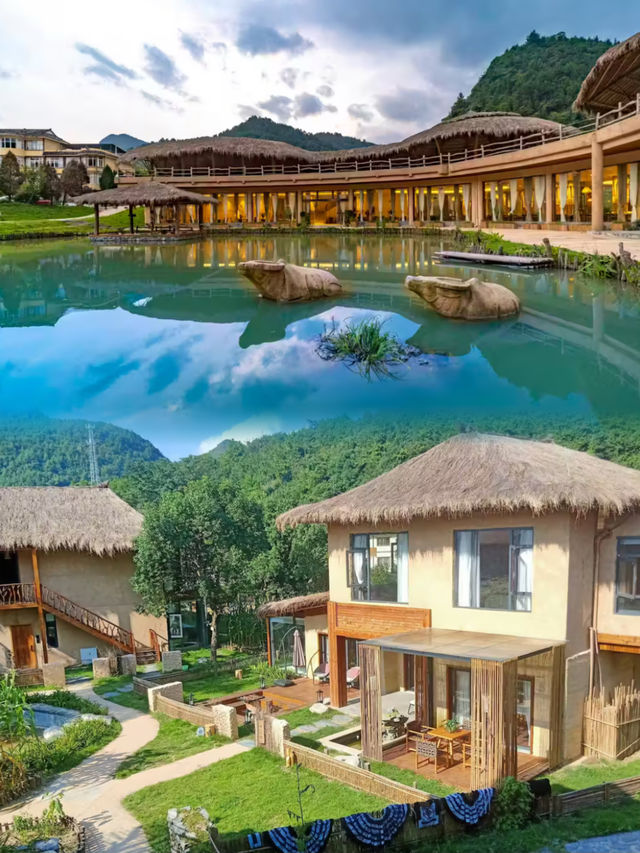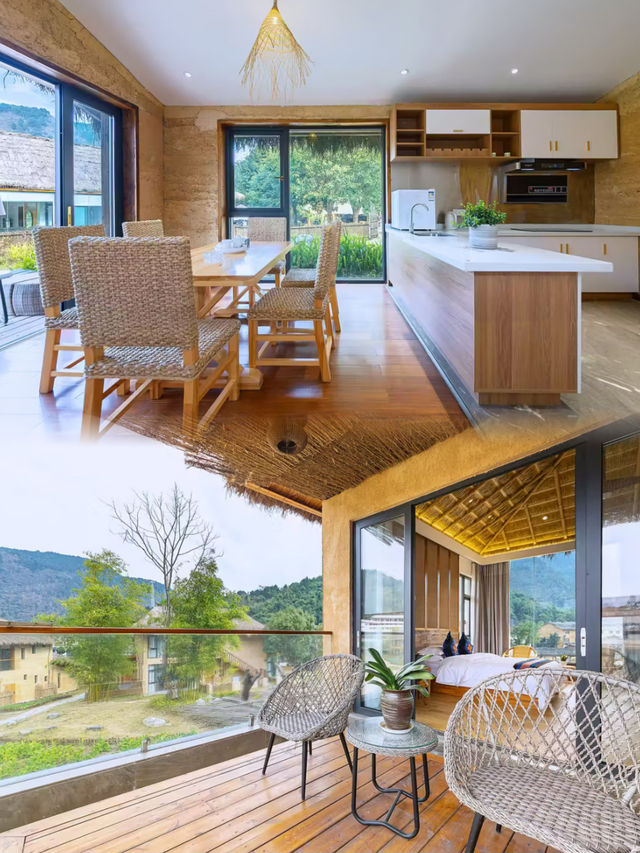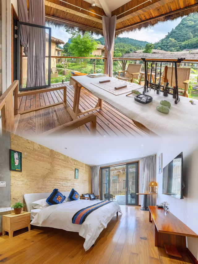 In the ancient Yao Mountain village, the primitive farming methods of 'slash-and-burn' cultivation are preserved, along with the original and rugged ethnic customs, which are hailed as 'living fossils of primitive society'. The White Trousers Yao people are also known as the 'Eastern Indians'. Here, ancient trees reach for the sky, and the verdant mountains provide a backdrop, with thin mists winding through the mountains like a fairyland, entering the primitive village is like stepping into a Shangri-La. Far from the hustle and bustle of the city, staying in the Yaochi Xiaoqikong guesthouse located in the central area of Yao Mountain ancient village, you can find a piece of inner peace. The guesthouse has two floors; the first-floor rooms have their own private farmhouse courtyards, lush with flowers and plants, and the spacious yard is perfect for enjoying a lazy afternoon tea. The second-floor rooms have large open-air balconies that overlook the village's primitive scenery. The roof is covered with brownish-grey thatch, and the earthy yellow exterior walls retain the original ruggedness, with wooden stair railings outside for easy access to the upper floors. The room decor is simple and elegant, with warm yellow wooden floors complementing the earthen walls, and the natural light from the floor-to-ceiling windows makes the rooms bright and airy. The rooms feature wooden barrel bathtubs for experiencing the characteristic Yao bath, and through the windows, you can gaze at the rolling hills not far away. You will feel the warmth of the Yao people's 'gun salutes' and 'blocking the door with wine' hospitality rituals. The guesthouse also has pottery workshops, rattan weaving workshops, carving workshops, silk workshops, and dry milling workshops for visitors to experience. There are daily Yao ethnic dance performances from 11:30-12:00 and the 'Yao Mountain•Yao People' live performance from 20:00-21:00, full of Yao ethnic customs!