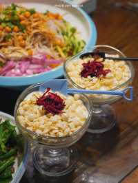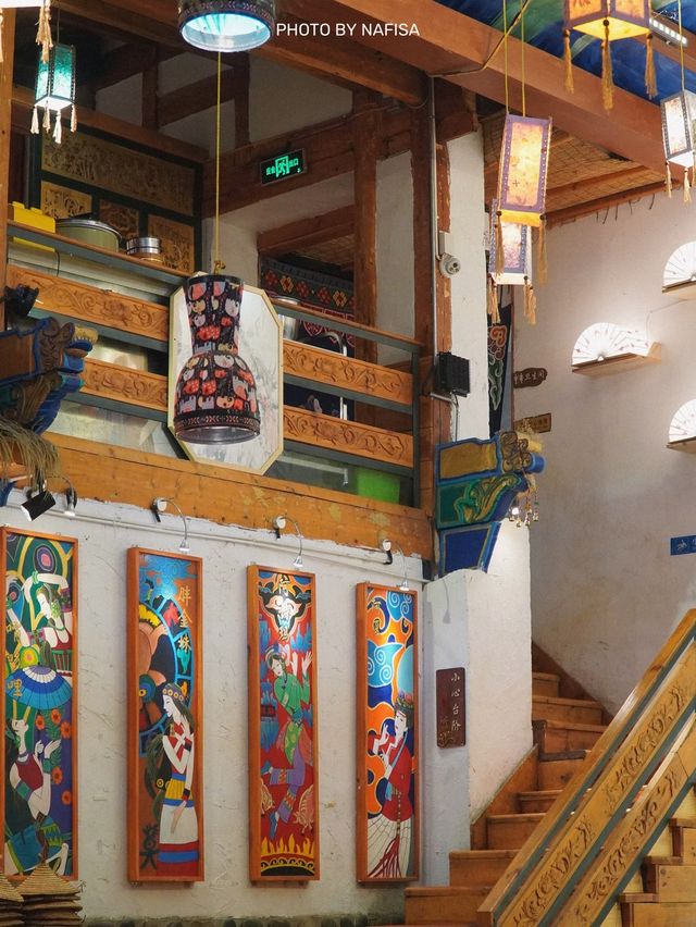 If you find yourself in Lijiang, I highly recommend exploring the nooks and crannies of the ancient city, where delightful surprises may await you. On this occasion, I brought my mother to Yunnan, and she was particularly taken with this restaurant, which exudes a strong ethnic charm. The restaurant is steeped in rich ethnic culture, with elements of it visible everywhere. If Dali is known for its "wind, flowers, snow, and moon", then the Naxi style of Lijiang can be described as "draped in stars and moon". You will find many decorative elements related to stars and moon. Traditional paper lanterns, Naxi scripts and totems, the seat of the Tusi lord, and even a wooden horse for photo opportunities are all part of the decor. It is said to be the most popular restaurant in the entire ancient city. As for the food, the original prices may be slightly high, but the set meals are quite a bargain. For an average of less than a hundred per person, you can taste several local specialties. 🌈 The Snow Mountain Fish 🐟 is a dish many restaurants offer, but the flavor here is genuinely excellent. It comes with many side dishes, a hint of spiciness, and a distinctive bamboo straw hat 👒. Be aware that the fish does have bones. 🌈 The Chicken Shredded Cold Rice Noodles come in a large bowl, offering a refreshing taste. It's a staple food that I absolutely love. 🌈 The Pao Lu Da 🍹 is a specialty drink in Lijiang, similar to coconut milk sago, but with an added slice of coconut and rose jam bread, giving it a rich milky flavor. 🌟 Prince of Western Yunnan 📍 Location: Opposite to Fang Guoyu's former residence at the intersection of May 1st Street and Wenming Village, Ancient City District, Lijiang City, Yunnan Province.