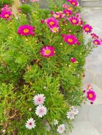 At Luxing Ancient Town's Boxing Yun She, bougainvillea blooms on the balcony