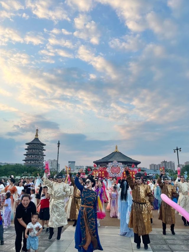 My friend brought their family to Luoyang for summer vacation, and I took them straight to experience the joy of the Sui-Tang Luoyang City. They had so much fun they didn’t want to leave! ✅ Divine Capital Dance Party 📍 North Square of Yingtianmen ⏰ July 15 - August 31 (except Mondays), 19:00-19:10 nightly Who would’ve thought dancing under a thousand-year-old city gate could be this wild! The BGM features fiery electronic beats 🔥, surrounded by Hanfu-clad dancers. By the end, they even pull tourists into a circle dance—the vibe is absolutely legendary!! 🎉🎉 ✅ Yingtianmen Projection Show 📍 North Square of Yingtianmen ⏰ June 28 - August 31, 20:30 nightly Don’t leave after the dance party—stick around for the Yingtianmen Projection Show! At 8:30 PM, the lights lit up, and my friend literally gasped in awe. The entire gate comes to life under the projections, with immersive sound and lighting effects—your phone storage will be full in no time! 📸 ✅ Phoenix Dance of the Divine Capital 📍 Jiuzhou Pool ⏰ 20:30 nightly This was the performance my friend was most excited about! Luoyang’s first large-scale imperial live-action show at Jiuzhou Pool, centered on Empress Wu Zetian’s coronation at Yingtianmen. Through chapters like "Eternal Song of Yingtian," "Golden Armor’s Majesty," "Peony Splendor," "Tributaries from All Nations," and "Phoenix Dance of the Divine Capital," it vividly portrays Wu Zetian’s life and Luoyang’s history. My friend was blown away! You can even take photos with the NPCs afterward. 【Accommodation & Transportation】 🏢 Stay in the Old City—Yuebo Hotel is close to Yingtianmen and Lijing Gate. For daytime travel, taxis work well, but after sunset, the weather cools down, making e-bikes a super convenient option to get around!