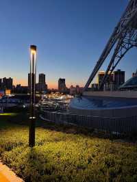Recently, the City Balcony has become a hot spot for photos! ☑️ Luoyang City Balcony, a new landmark building in Luoyang, offers expansive views, a ground-level health trail, and an underground stadium. It is located between Longmen Avenue and Peony Bridge in Xigong District, next to the Luo River. The main construction of Phase One is basically complete. The large balcony is open for free visits, and the health trail is also open to the public. It’s a great place for walking, taking kids out, and relaxing. Say no to staying home on weekends❗ Come to Luoyang City Balcony for a super healing CityWalk🌆 Walk slowly along the trail, feel the river breeze, and all your fatigue will be swept away by this gentle wind~ 🍋 Check-in hidden gems ✅ Viewing platform: Overlooking the Luo River is absolutely stunning! Especially at sunset🌅, the setting sun dyes the river golden red, so beautiful it leaves you speechless, like stepping into a movie scene. ✅ Luoyang specialty drink Xiaofang: Grab a cup of Xiaofang and enjoy the beautiful scenery while walking on the City Balcony trail—your mood will be lifted instantly. ✅ Riverside trail: Perfect for jogging or walking, and you might even see people leisurely fishing here🎣. The relaxed vibe of life is fully felt. ✅ Sports area: Basketball court, soccer field, tennis court—all available to meet your diverse sports needs! Bring your friends and get active💪. 🍢 Tips for eating while strolling Don’t rush to leave when you’re tired! Nearby, there are authentic Luoyang snacks🥢. Try a bowl of sour and appetizing Jiang noodles, or bite into a crispy outside, tender inside fatty sesame cake, paired with a refreshing lemon tea🍋—your taste buds will take off on the spot~ Discover surprises all along the way; Luoyang City Balcony truly writes the word “romance” in every corner💕 This time, we stayed at Luoyang Yuebo Hotel (Yingtianmen Luoyi Ancient City Branch), which is very close to every attraction. The rooms are clean and tidy, very comfortable, and the staff are polite, enthusiastic, and provide excellent service. The hotel offers a free laundry room and free parking.
