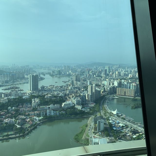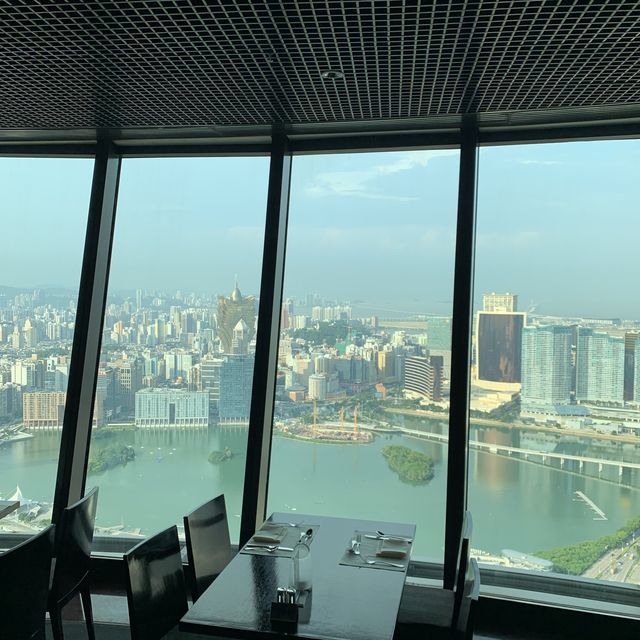 Address: Macau Tower Convention & Entertainment Centre, MO 60/F, Macau Tower, Largo da Torre de Macau Atmosphere/Facility: A 360-degree rotating Macau Tower 60th floor cafe! Key Point: Macau skyline while enjoying an afternoon tea set Average price per person: 20,000 won Rating: 4/5 The food wasn't that great! It was great because I could see Macau at a glance! It's located on the 60th floor of Macau Tower, so I took the Macau Tower elevator up and was guided to a window seat. I could see the whole Macau city at a glance outside~ I could also watch people enjoying the skyline from Macau Tower! If you order an afternoon tea set, you can also enjoy a simple finger food buffet, and while you're eating, the seats slowly rotate~ That's why it's called a 360 cafe! I went to find finger food and almost got lost when I went back to the table😂 #HotPlace #Macau #MacauTower #360cafe