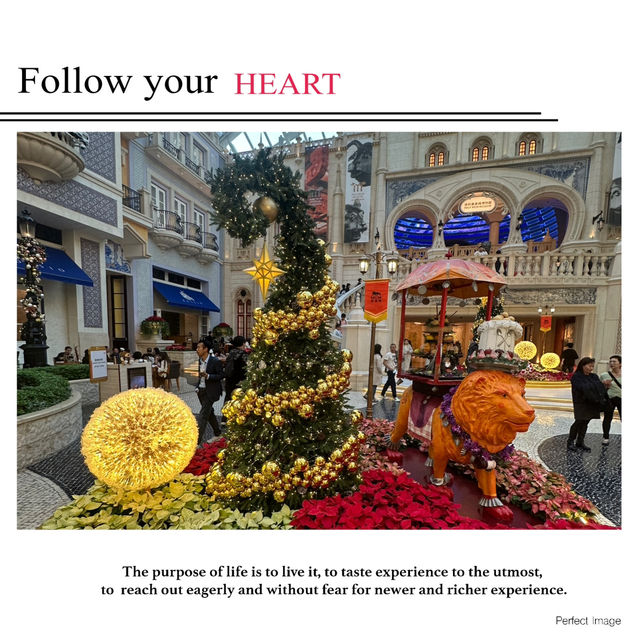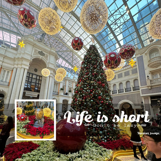#Macau Attractions Feel the rich Christmas atmosphere at MGM Skydeck Plaza. It's not a holiday, but the flow of people is still very large. Many people come specifically to take pictures. You must see the beautiful scenery with your own eyes😎👏 The whole square is equipped with seven Christmas trees, different shapes, very characteristic, several are even in a bent state, like Santa's hat😂🪄 There are also many sparkling dandelions next to it, various round decorations hanging in the air, giving the whole venue a warm feeling, and you can see the MGM lion statue, quite characteristic🎉📸