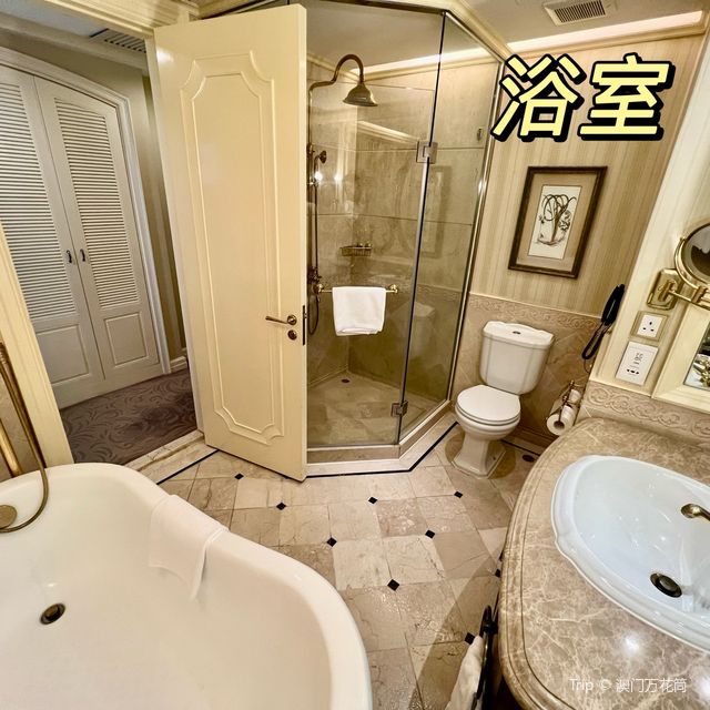 Macau Rocks Hotel|Far away from the city, not noisy or bustling. The hotel has only three floors and no swimming pool. You can experience the slow life in Macau. Each room has a terrace with sea or city views. The terrace is super cozy and comfortable, I can stay there all day. Bathroom toiletries are from L'Occitane. The hotel and guest rooms are decorated in European palace style. The lobby has a gorgeous crystal chandelier and spiral staircase! #MacauHotel #MacauTravelGuide #CheapHotel