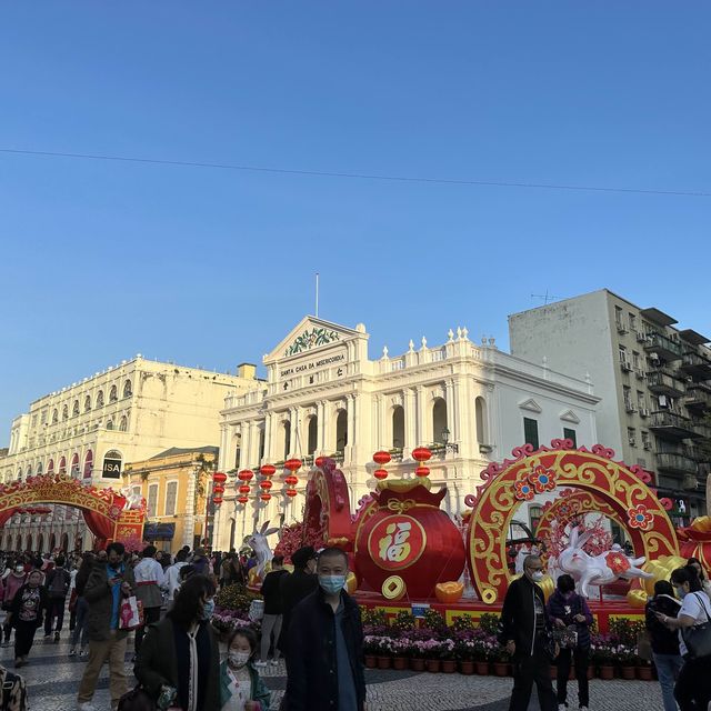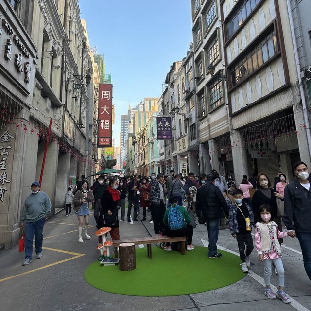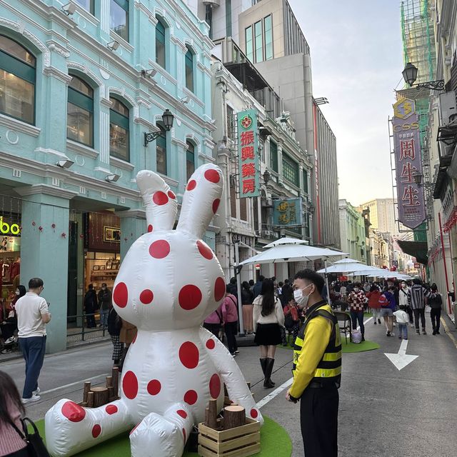 From the first to the third day of the Chinese New Year, Rua do São Paulo is open to the public for walking. Xinmalu Road is usually a very congested road, but during the three days of the New Year, you no longer have to worry about traffic jams, because cars cannot pass during these three days and pedestrians can walk on it. And there are many check-in devices on the road~~ There are mushrooms, green land, clouds and rabbits In the afternoon, there will be instrumental performances by the police. There are old shops on both sides of the road. But to be honest, it's not a good place to check in, because there were too many people during these three days, and there were countless strangers in the photos I took 😂😂 It’s just a good place to feel the atmosphere, and it’s rare that the entire Xinmalu Road is open to people to walk on, so you must go for a walk. #MacauClearance