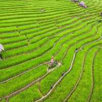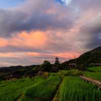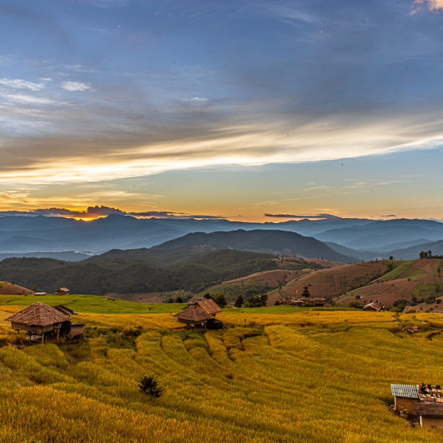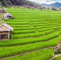 For those in Chiang Mai who are going to visit Doi Inthanon, you can stop by at Ban Pa Bong Piang. During the time they plant rice, the fields will be lush green, contrasting with the blue sky. And when the rice is ripe, it will turn bright yellow. In the morning, watch the sunrise and the sea of ​​fog. Walk to take some chill photos on the bamboo bridge. During the day, walk around the village. In the evening, prepare to go back to watch the sunset and take photos. You will get beautiful light. And at night, don't forget to look at the sky to see many stars. I recommend this place to anyone who loves nature. #Pa Bong Piang #Pa Bong Piang Rice Terraces