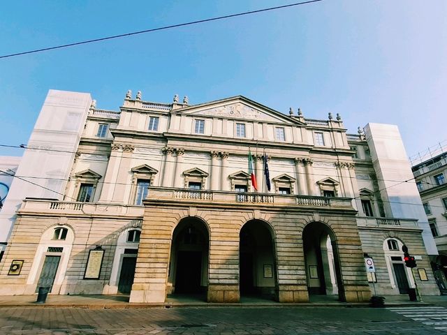 A half-day visit to Milan, Italy, during a 2025 European trip. The Teatro alla Scala, also known as La Scala, located in Milan, Italy, was inaugurated in August 1778 and is one of the world's most renowned opera houses. The opera house was damaged during World War II and rebuilt in 1946. It stands on the original site of the Santa Maria della Scala Church. Outside the opera house, elegant posters are displayed, which turn out to be promotional materials. The upcoming performance is Richard Wagner's opera 'Siegfried,' part of the 'Der Ring des Nibelungen' series.
