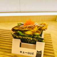 I recently visited a Japanese restaurant in Mong Kok called "QUE". In addition to offering a variety of Japanese dishes, the restaurant also has a variety of delicious dessert dishes! The restaurant is beautifully decorated with Japanese wood as the main theme, the seats are spacious and comfortable, and the waiters are attentive and polite. We had a meal for two for $448: Crispy Deep-fried Boneless Chicken Wings (8 pieces) This crispy fried single-bone chicken wing has a golden and crispy skin on the outside, tender and juicy meat on the inside, and is served with a special sauce. Special five-point sashimi with wild vegetable udon (+$98) This sashimi dish combines fresh fish fillets, including thick-cut salmon, tuna, scallops, scallops and red shrimp. The colors are bright and every bite of sashimi is sweet and fresh, and it is paired with delicate wild vegetable udon. Soft Shell Crab Sushi Taco This soft shell crab sushi tower has delicious crab meat, crispy on the outside and tender crab meat on the inside. Eel and Egg Sushi Taco This sushi tart combines the aroma of eel with the smoothness of tamagoyaki, creating a layered flavor. The smoky flavor of the eel complements the sweetness of the tamago. Matcha Tiramisu Box with Candied Red Beans (+$10) The bitter aroma of matcha blends with the milky aroma in distinct layers, and the addition of candied red beans brings a hint of sweetness. Que Silky Coffee (+$18) This cup of coffee is definitely a masterpiece among drinks, with a fragrant aroma and a smooth taste. Peach Soda (+$38) This peach soda is fresh and delicious. The sweet taste of peach is just right, and the cool feeling of bubbles makes people feel refreshed. #Que #Japanese-Western-Style #Japanese-Cooking #Mongkok-Food #hkigers #hkbloggers #foodpics #foodstagram #igers #hkfoodlover #foodie #diet #852foodie