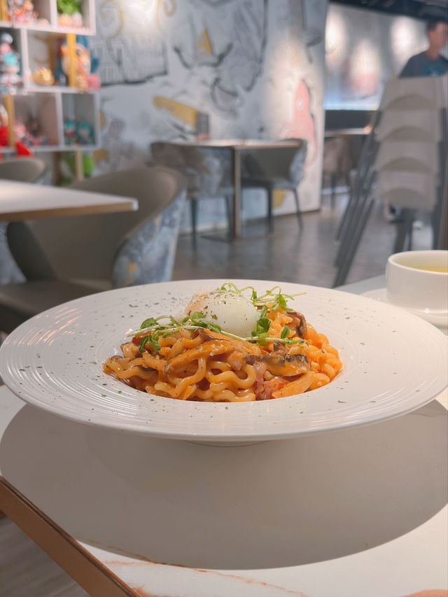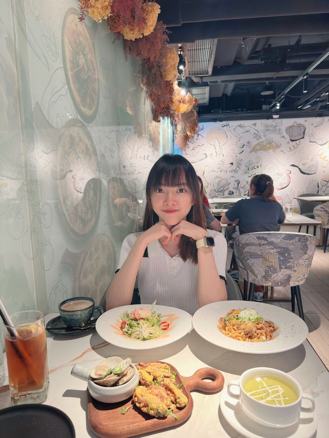 I even found a homemade handmade pasta and Fusion snacks "Lucky's Pasta & Pizzeria" 👨🏻🍳 perfect for those of you who want to try something new😬 。 ⚠️This restaurant charges 10% service charge💰 。 Set Dinner🍽️$248💰 。 Hot spring egg rose sauce smoked brisket roll roll 🍝 set includes 💰 rose sauce sweet and spicy appetizer 🌶️ with smoked brisket 🥓 mushrooms 🍄🟫 and hot spring egg 🍳 roll roll powder smoky Creamy🤤 delicious 👍🏻 。 Happy Hour Snack Choose 2🥢 Single order $88💰Choose salted egg yolk chicken wings and Japanese sake cooked mussels🐥Chicken wings crispy skin and tender meat😆Salted egg yolk taste rich🥚The mussels are big and fresh😍The aroma of sake penetrates into the mussels🍶 。 Avocado Shrimp Salad🥗 Set includes 💰Avocado Smoothie🥑 plus fresh shrimp and salad vegetables🦐🥬🍅 Fresh and appetizing😛 。 This is the soup 🥣 set includes 💰 green bean cream soup 🫛 。 Today's selected dessert 🍮 set includes 💰 Earl Gray caramel compote 🍵 rich tea ☺️ 。 Iced lemon tea🍋 set includes💰 。 Hot milk tea🫖 single order $26💰 Lucky's Pasta & Pizzeria 地址: 📍Shop 311A, 3/F, T.O.P This is Our Place, 700 Nathan Road, Mong Kok #LuckysPastaandPizzeria #MongKokFood #MongKok #MongKokRestaurant #WesternFood