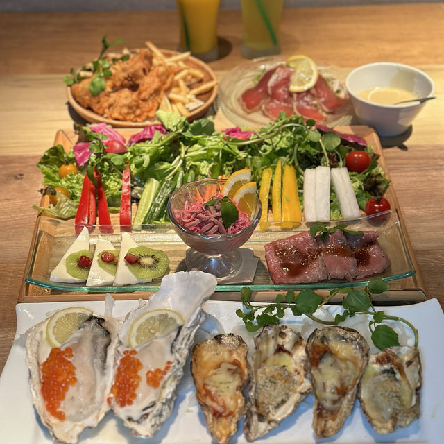 #TravelWithMe Conveniently located near Nagoya Station, this casual dining bar boasts oyster dishes and specialty Chicago pizza. 🍻 TefuTefu Nagoya Station Branch ⸜︎👍︎⸝ It's been years since I last visited, back when I first started working. 🤧ˎˊ˗ The spacious interior, where you'll be greeted by a cow, features 12 private rooms, including a VIP room that can accommodate up to 16 people. 🐮✊🏻𖤐 This time, I had the delicious cheese and oyster course. 🧀🦪 With bagna cauda Enjoy a premium course featuring a delicious appetizer platter, cheese dishes, and a tasting comparison of raw and grilled oysters. 👑🌟 The main dish, oysters, was absolutely amazing! ꉂꉂ🙊💓 They were plump, not bitter, and incredibly easy to eat. ✎📖 So delicious, the aftertaste lingers... 🥹🤍 And of course, the shredded potatoes are the best! 🍟 I highly recommend you all to try it! 🦤ˊ˗ 𓈒𓏸𑁍𓏸𓈒𓂃𓂃 𓂃𓂃𓂃𓂃𓈒𓏸𑁍𓏸𓈒 "3-Hour ☆ Tefutefu Premium ☆ 11-Dish Set Including 3 Types of Oysters and Ocean Cheese Pasta, All-You-Can-Drink ¥5,000" ・Appetizer Platter and Bagna Cauda...Orange-Marinated Pork Tongue and Purple Cabbage, Kiwi and Mozzarella Caprese, Kuroge Wagyu Roast Beef, Bagna Cauda ・Marinated Tuna Carpaccio ・3-Type Oyster Tasting...Oyster Cocktail with Salmon Roe and Lemon Sauce, Grilled Oysters with Garlic Butter and Herb Breadcrumbs, Grilled Oysters with Homemade Tomato Sauce and Mozzarella ・Heaping Plate of French Fries ・Original Crispy Chicken ・Ocean Cheese Pasta ・Today's Dessert [Spot Information] 🍽️ Private Room, Cheese & Oysters, All-You-Can-Eat & Drink, Tefutefu Meieki @tefutefu_meieki 📍 Daitokai Building B1F, 3-22-8 Meieki, Nakamura-ku, Nagoya, Aichi Prefecture 🚃 Approximately 1 minute walk from Unimall Exit U14 📞 052-589-2299 🕰️ Mon-Thurs 5:00 PM - Midnight, Sat-Sun 11:00 AM - Midnight #NagoyaStationGourmet #NagoyaStationCafe #NagoyaSightseeing #NagoyaStationIzakaya #NagoyaOysters