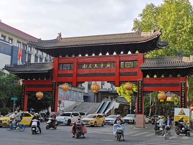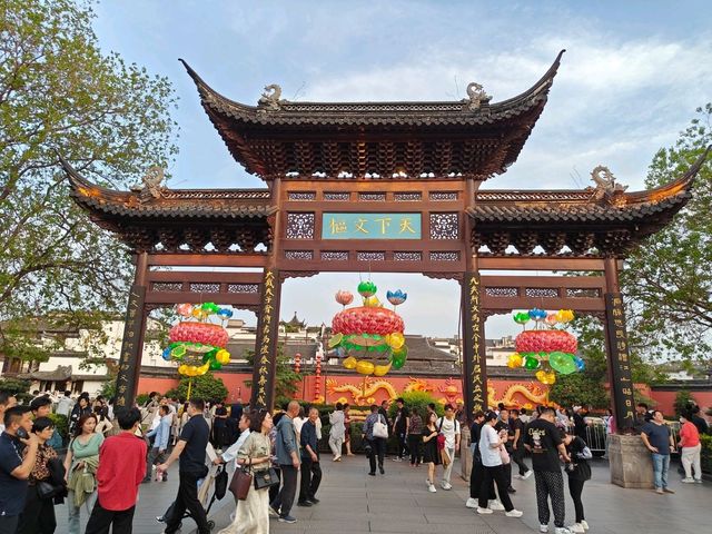 Confucius Temple is a must-visit place in Nanjing. The Qinhuai River here has beautiful scenery, and the shopping street next to it is very lively and crowded all year round. It is recommended to go to the bridge to take pictures of the Qinhuai River near dusk. In the evening, you can go to the nearby chain restaurant - Nanjing Dapaidang to taste authentic Huaiyang cuisine, the famous salted duck, and Meiling porridge, which are delicately prepared and taste great. #Confucius Temple #Qinhuai River