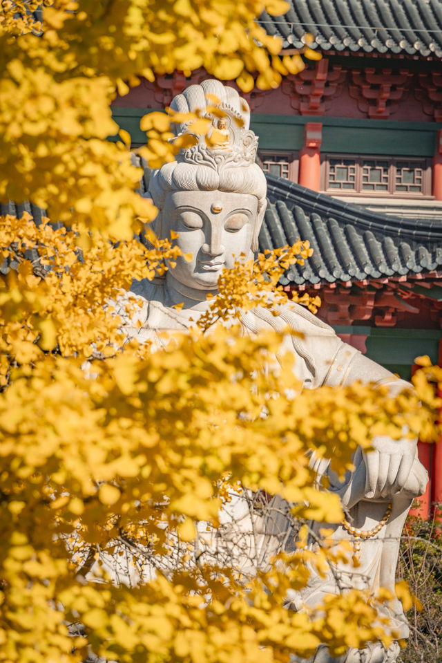 Nanjing's Hidden Gem Check-in Spot in Autumn 🤩 | Pilu Temple's Ginkgo Trees Are Here to Amaze! I've long heard that the ginkgo trees at Nanjing's Pilu Temple are absolutely stunning, so I came to check it out while the autumn weather was crisp and pleasant, and it certainly didn't disappoint! Autumn here is simply too therapeutic; the golden ginkgo trees and the ancient temple's red walls complement each other beautifully, and every casual shot looks like a masterpiece 📸 📍Address: No. 4 Hanfu Street 🕘Opening hours: 9:00-16:30 (Last entry at 16:10) ✨Recommended activities: 1. Square in front of the Main Hall This is the best spot to view the ginkgo trees. The sculptures in front of the ancient buildings, paired with the ground covered in golden ginkgo leaves, create an incredible atmosphere! It's recommended to take photos between 9-11 AM when the light is softest. 2. Side of the Mahavira Hall The red walls contrast beautifully with the ginkgo trees, making it especially suitable for portrait photography. You can bring a transparent umbrella as a prop; the effect is fantastic! 3. Ancient ginkgo trees in the backyard The ginkgo trees here are older, and their branches and leaves are particularly dense. Remember to shoot from a low angle to capture the entire golden expanse. 📸Photo tips: ✔ Wearing light-colored clothes makes for better photos. ✔ You can bring some small props: books, teacups, oil
