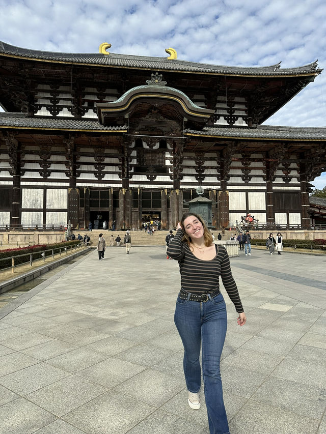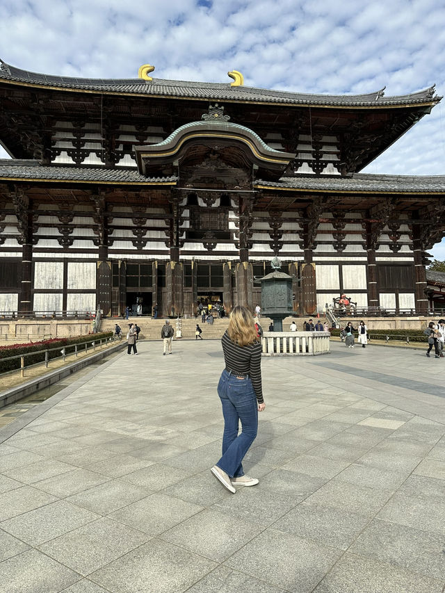 Step into timeless tranquility at Nara’s Todai-ji Temple—where history, spirituality, and jaw-dropping grandeur await! 🐘⛩️ Towering over the city, the Great Buddha statue (Daibutsu) inside Todai-ji’s Daibutsuden is genuinely awe-inspiring; its sheer size and serene gaze make for one unforgettable moment. Your best route: Start early (doors open as early as 7:30 AM in spring/summer!), and stroll along the tree-lined path from Nara Park, mingling with the friendly deer before reaching the temple. Must-dos include standing before the immense Daibutsu, marveling at the wooden Great Buddha Hall—one of the largest of its kind in the world—and squeezing through the “healing pillar” inside the hall (said to bring luck if you fit through!). Snag the most insta-worthy shot of the Daibutsuden’s facade right after sunrise when morning mist hovers, or from the side path lined with lanterns for a traditional frame! Don’t skip the map of Nara’s historic precinct outside the gate for a bird’s-eye photo. Top tips: Arrive early to avoid the crowds and appreciate the peaceful vibe. If visiting in autumn or spring, the temple grounds glow with seasonal beauty. Shoes must be removed in some areas, so slip-on footwear is easiest. Bring cash—admission is paid at the entrance. Closed-toe shoes are handy for walking gravel paths. Key precautions: Watch your belongings—the deer roaming the park are curious, especially about paper maps or tickets! Respect the calm inside the hall and no flash photos of the Buddha. #Nara #TodaiJi #GreatBuddha #TempleTrip #JapanTravel
