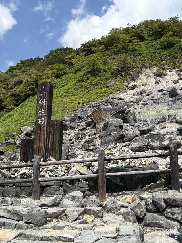 Nasu Highlands is home to numerous amazing tourist attractions. The Tsutsuji Suspension Bridge is located on the way to the Nasu Ropeway. Parking is free, and after a five-minute walk from the parking lot, you'll reach the suspension bridge. The bridge spans 130 meters in length and stands 38 meters high. Crossing the bridge is thrilling, but the breathtaking view of the towering mountains is truly spectacular. The Sessho-seki, or "Killing Stone," is said to be the transformed form of the nine-tailed fox. You can learn about its legend from the information boards on-site. The area is enveloped in the mystical scent of sulfur, creating an enchanting atmosphere. Nearby, there is the Onsen Shrine, which is worth visiting for a prayer. In front of the shrine, you'll find a footbath to relax in. Nasu is also known for its hot springs. Close to the Onsen Shrine is Shika-no-Yu, a traditional hot spring. The baths are divided by temperature, so if you’re not comfortable with hot water, you can choose the lowest temperature bath. Note that the washing area does not allow the use of shampoo or soap, so you’ll only be soaking in the baths. While these attractions are relatively close to each other, getting around without a car can be inconvenient. Renting a car is highly recommended when visiting Nasu Highlands.
