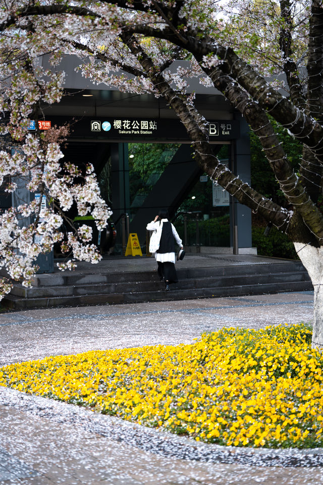 Ningbo's most beautiful cherry blossom subway entrance, a cherry blossom rain has just fallen