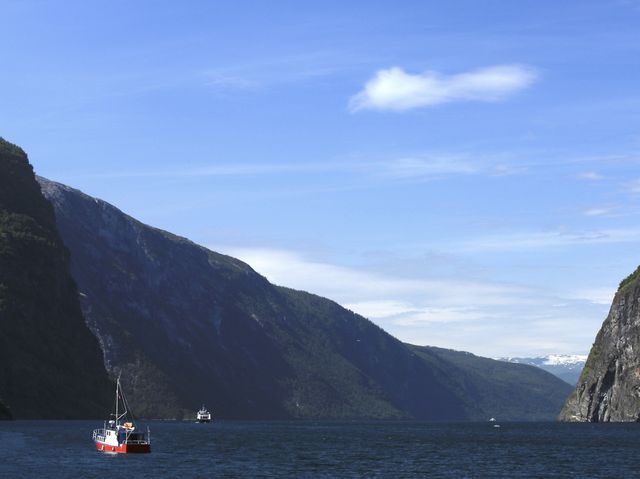 #tripcom5thAnniversary Aurlandsfjord is a fjord in Westerland county in eastern Norway. The fjord flows through the municipalities of Aurland, Vik and Lærdal. This 29 km long fjord is an offshoot of the main Sognefjord, Norway's longest fjord. The fjord is deep and narrow, with the deepest point reaching about 962 meters below sea level and the width generally less than 2 kilometers. The village of Flåm is located at the deepest point of the Aurlandsfjord. Other villages along the fjord are Aurlandsvangen and Undredal. Most of the fjords are surrounded by steep mountains up to 1,800 meters high, and there is almost no human habitation along the fjords, except in a few small valleys. The Nærøyfjord World Heritage Site covers most of the Aurlandsfjord. #Overseas travel #Norway travel #Norway tourism #Norway scenery #I miss Norway so much #Norwegian fjords #World Heritage #World Natural Heritage #Cruise #norway