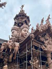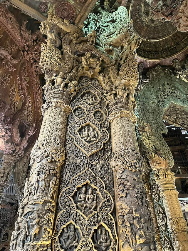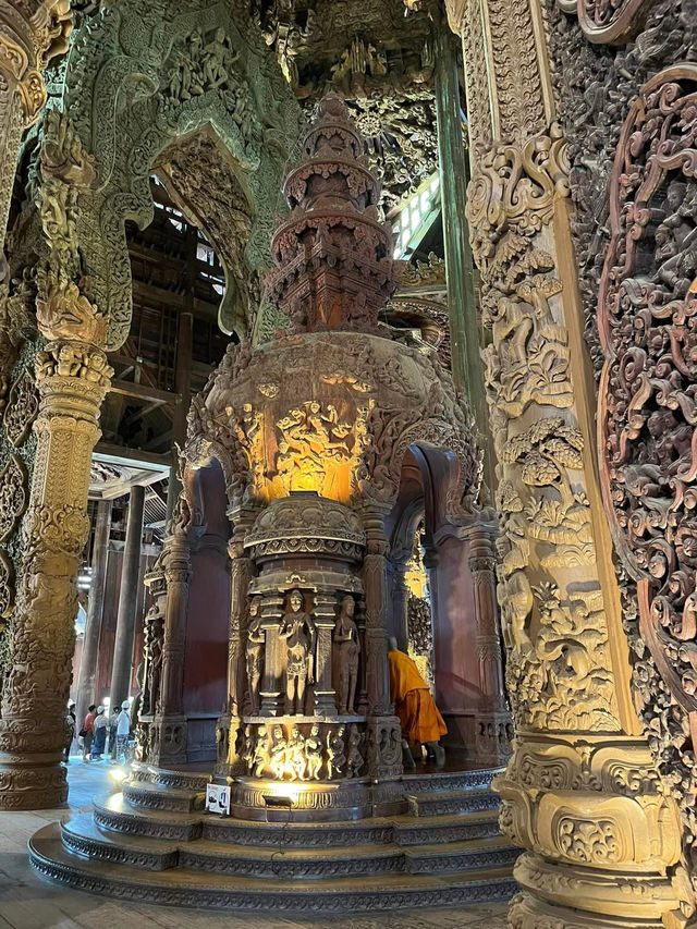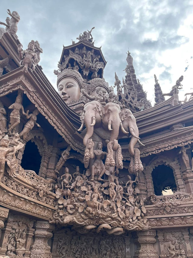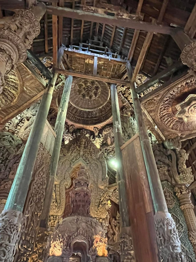 Step into a world of intricate wonder at The Sanctuary of Truth 🛕✨—Pattaya’s all-wood temple that fuses art, culture, and philosophy into one spectacular experience! You’ll be blown away by hand-carved scenes honoring Buddhist and Hindu spiritual tradition, all set right by the sea. For the best visit, arrive early to soak in the peaceful morning atmosphere and snap dramatic shots of sunlight filtering through ornate woodwork. Your must-do route: explore both the exterior and interior carvings, then climb up for panoramic views over Pattaya Bay—top insta-worthy moment right at the main façade with rays illuminating the soaring spires! Guided tours offer deeper insights into the temple’s story, plus you can see ongoing woodcarving by local artisans. Practical tips: The Sanctuary is open year-round; daytime hours run 08:20–18:00, with a twilight entry 18:20–20:30 if you crave mystical sunset scenes (last entry an hour before closing). Entrance is 95 baht—totally worth it for a full sensory dive into living craftsmanship. Wear comfortable shoes for lots of walking, but dress modestly—shoulders and knees should be covered as a mark of respect. Precaution: Don’t forget a hat and water, especially if visiting midday, and protect your camera from sawdust near carving areas! My advice—skip umbrellas in favor of a light raincoat if you catch a tropical shower; Pattaya breezes can send umbrellas flying. Consider arriving as early as possible for fewer crowds and magical, uncrowded instaworthy shots. #Pattaya #SanctuaryOfTruth #ThailandTravel #TempleTour #TravelTips