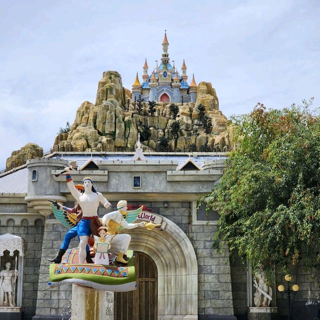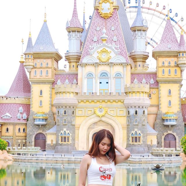 The entrance fee is around 2000 THB per person. You can buy tickets through an app from Thailand or at the gate. There are several zones, and the park is open from morning until around 7 PM. It feels like a compact amusement park but has everything, including thrilling rides, a water park, an aquarium, and cute photo spots. At night, there is a show in front of the castle. Vietnam has done an excellent job with this park. Food prices are higher than outside but still acceptable. Families with young children will have a great time. Highly recommended!