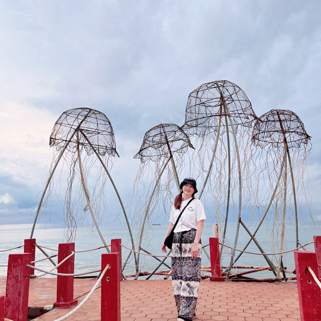 It's close to the city center, making it a great spot to watch the sunset and take artistic beach photos. No matter how you take pictures here, they always turn out beautiful. It costs around 900,000 VND to enter, but it's definitely worth it for the photos. Beaches with such scenic setups are rare. On the day I took photos, there was a heavy thunderstorm in the afternoon. Luckily, it stopped after about 20 minutes! So, the photos I took weren't very bright, but when the sun comes out, the pictures would surely be much more beautiful than mine. I highly recommend everyone to visit here. Even if you don't take artistic photos, you can still take stunning beach photos!