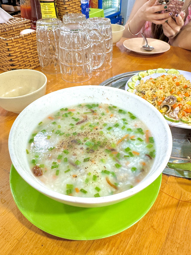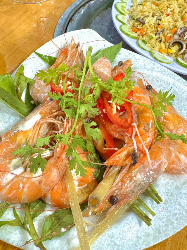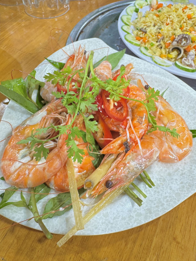 This seafood restaurant is located in the heart of Phu Quoc, right at the heart of Phu Quoc. The market itself is like a walking street, with food carts and street food stalls, both seafood and local. The atmosphere is like a series of open-air restaurants, with fresh seafood displayed in display cases, including shellfish, shrimp, and crab. We chose a restaurant that wasn't crowded. The restaurant's layout is similar to a typical Thai a la carte restaurant, with tables and seating. There are about 15-20 tables inside. The menu offers a wide selection of seafood dishes, including shrimp, lobster, shellfish, crab, and fish. The dishes are boiled, stir-fried, curried, fried, and even tom yum (spicy soup). We just looked at the pictures and chose the dishes. We ordered seafood fried rice, steamed shrimp with herbs, and congee with shellfish. Each dish was quite large. There were four of us, and we were perfectly full. Every dish we ordered was delicious, with all the flavors to our liking. The seafood was quite fresh. The prices are reasonable, considering the quality of the food. The portions are quite large. Seafood fried rice is 185 baht, steamed shrimp is 220 baht, and mussel congee is 160 baht. Service: There aren't many staff members and they don't speak English, making communication difficult. They're always busy. Personal opinion: I recommend trying this place because it's delicious and worth the price. You might have to choose your restaurant carefully, as some restaurants can be quite crowded. I recommend ordering the steamed and boiled dishes. Location: Duong Dong Phu Quoc Night Market on Street 54, Đường Nguyễn Trãi, Khu 1, Phu Quoc #GetDiscountsWithoutLuck