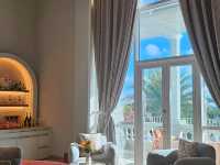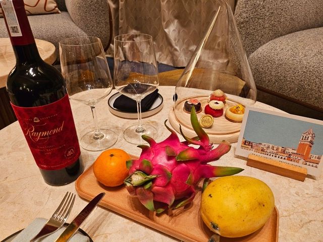 During this trip to Phu Quoc Island, we booked the Hilton's top-tier Room 2217! Located on the second floor, the room overlooks the swimming pool downstairs, and the sea view from the balcony is stunning. At night, you can enjoy a direct view of the fireworks show right in front, which is truly breathtaking and beautiful! This room type also comes with complimentary fruits, desserts, and red wine, adding a touch of ceremony to the experience. However, we later realized that the stairs inside the high-ceiling room were quite tiring to go up and down. A word of advice: if you're considering booking this room type, think twice!