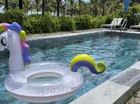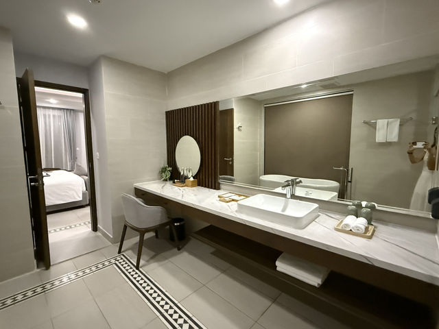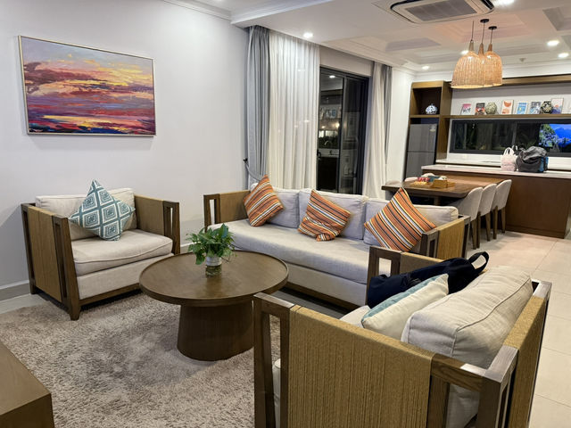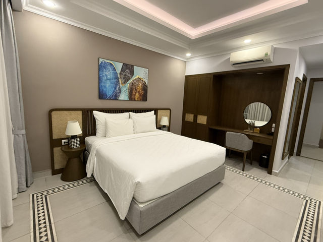 Staying in a duplex villa at a beachfront hotel in Phu Quoc Island was the ultimate dream vacation experience. The villa features three spacious suites, each with its own en suite bathroom and floor-to-ceiling windows, allowing you to wake up to breathtaking views of the sea and sky. The lush private garden connects to the pool, perfect for a morning swim or a relaxing evening drink by the pool. The indoor facilities are even more luxurious: the billiards room invites you to show off your skills, the cinema, with surround sound and comfortable sofas, feels like a private screening room, and the entertainment room, complete with a gaming table, is perfect for family gatherings or gatherings with friends. The overall design blends modern and natural elements, creating a sense of spaciousness. The friendly and attentive staff truly evokes a sense of relaxation and luxury. This isn't just a staycation; it's a journey of spiritual and physical well-being. The hotel's breakfast is also delicious, with a wide variety of options.
