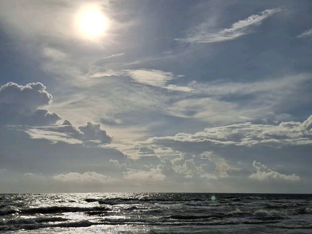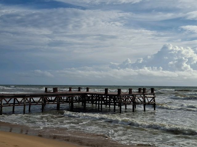 The long stretch of golden sand and the azure sea are like a golden ribbon shining on the coastline.