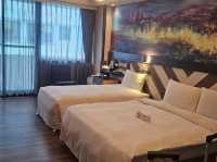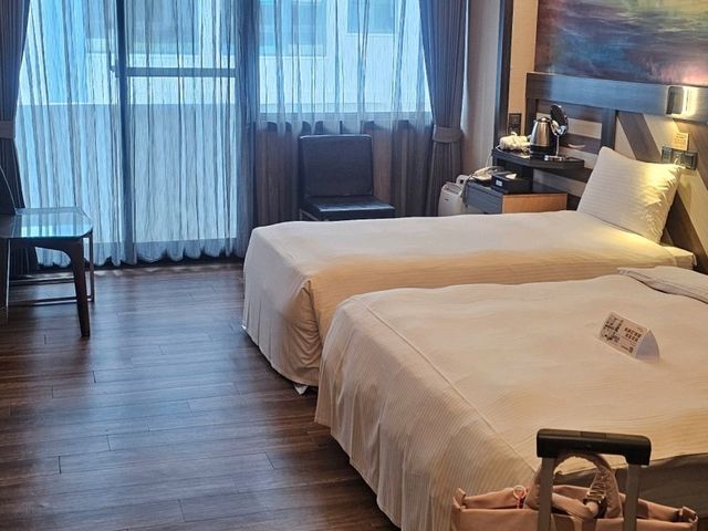 A triple room was under 2,000 NTD and included breakfast, so I initially worried the quality might be lower due to the price. After checking in, I discovered the entire hotel was very clean, bright, and new. The lobby is very grand, and breakfast is also served there. The room was also brightly lit, with floor-to-ceiling windows. It's also very close to Pingtung Train Station, and a convenient 10-15 minute walk to Pingtung Night Market. Check-in options include a check-in counter or an automated check-in/check-out machine nearby. There's no on-site parking, only about five or six spaces outside the hotel. I happened to have a spot available when I arrived, so I was able to park there. If the parking is full, you'll likely need to find a nearby paid parking garage. The hotel doesn't offer any extras. They also offer bicycles for rent, and they have quite a few. The breakfast was simple, not particularly luxurious or extensive. A minor drawback was that the bathroom water was probably too soft, making it difficult to rinse thoroughly. My skin felt slippery afterward, which was a bit unusual. Overall, however, it was a great value for the price and quiet. #Weifeng Hotel #Pingtung Train Station